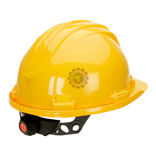 - Harnais de tète en plastique à 6 points d’ancrage et réglage manuel.