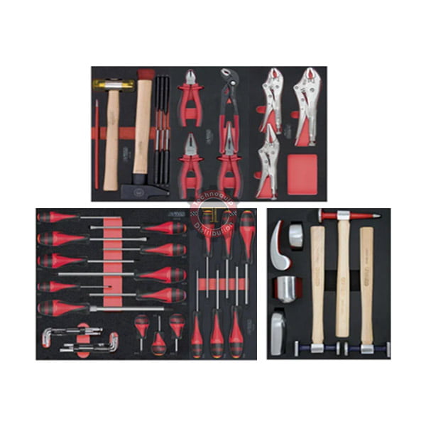 - L’ensemble comprend une goupille de verrouillage du vilebrequin, une goupille de réglage du PMH, un verrou de pignon de distribution et un outil pour verrouiller le chronométrage lui-même.
